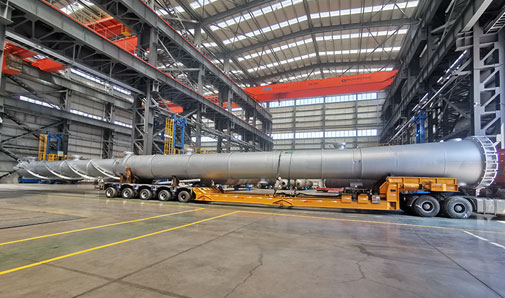 萬德化學(xué)(東營(yíng))有限公司拔頭油分離塔設(shè)備出廠運(yùn)輸